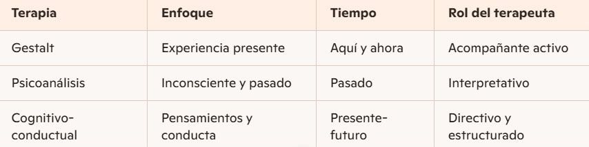 Diferencias entre terapia Gestalt y otras corrientes